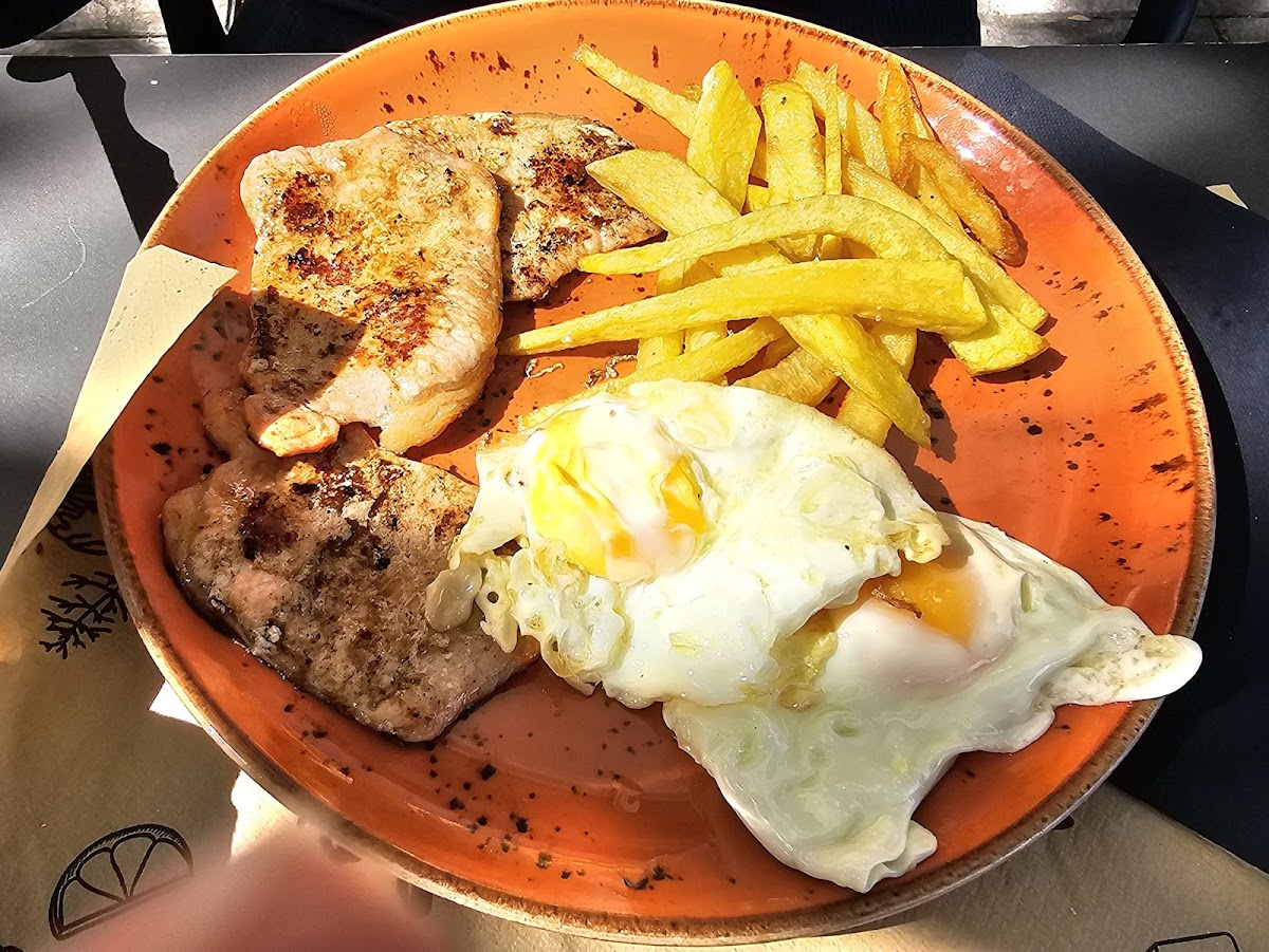 Comimos cinco, un domingo en la terraza. La carta es variada, y nos decidimos por platos combinados. Puedes elegir cada ingrediente. Estaban todos los platos muy buenos, y me sorprendió el lomo adobado rebozado, ;Qué bueno! Nos atendieron rápido y muy bien.